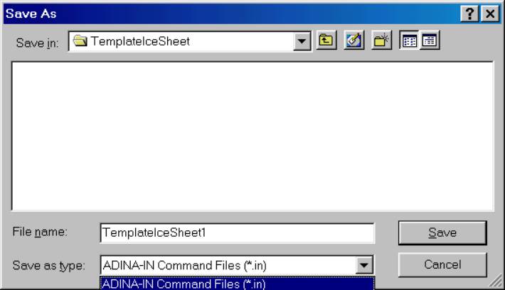 Choose "Save As Type" ADINA-IN Command Files.