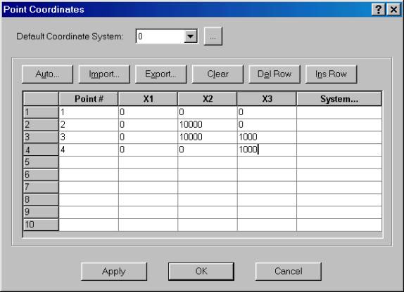 ADINA-F. Menu option: Geometry->Points