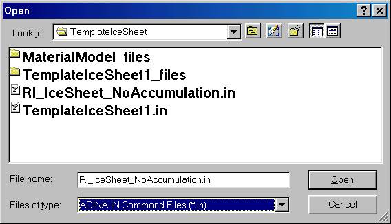 ADINA-AUI and load this file: RI_IceSheet_NoAccumulation.in