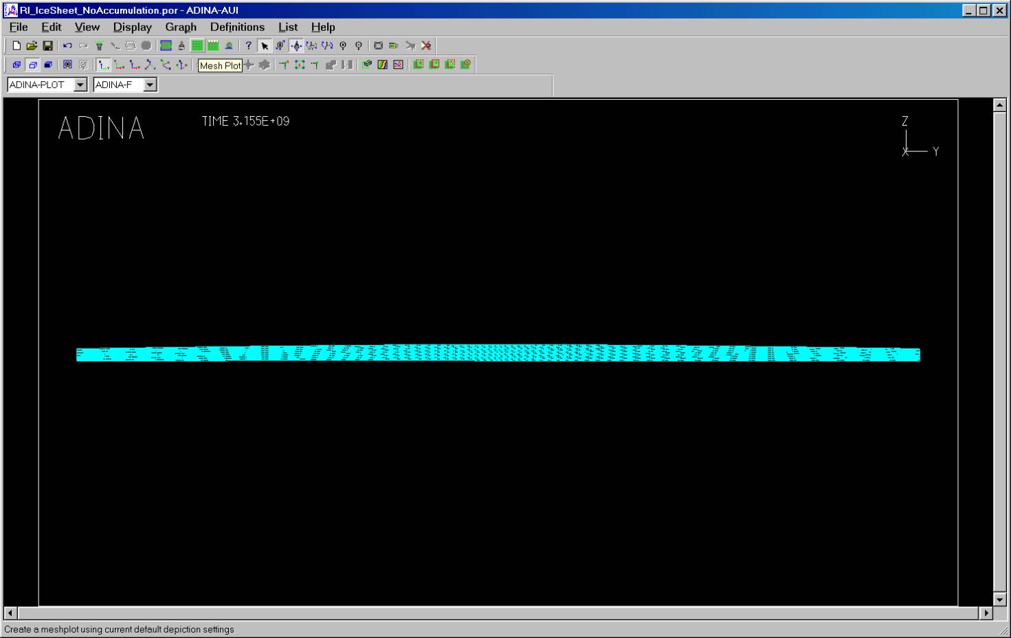 I start by building a basic ice sheet in ADINA-F. This model will be a basic ice sheet based