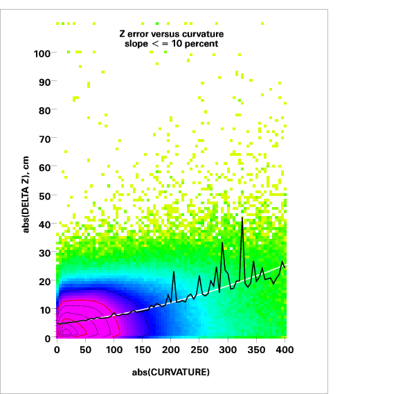 Correlation of relative Z error with local curvature
