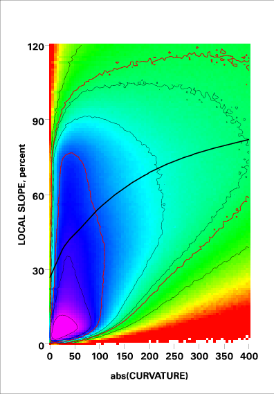 Correlation of local slope and local curvature