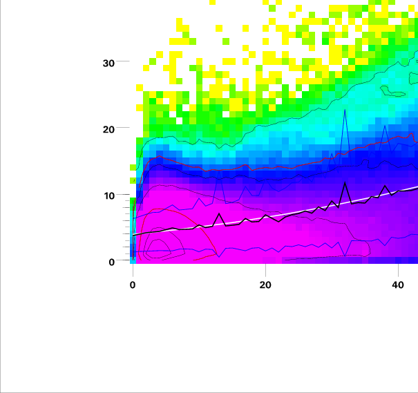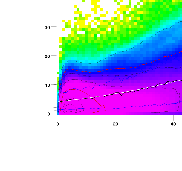 Contours on graphs enclose 99%, 95%, 90%, 75%, 50%, 25%, and 10% of data. 95 and 50 percentile contours are red.