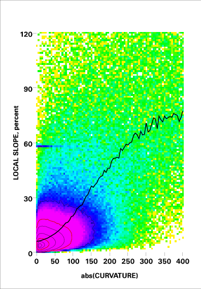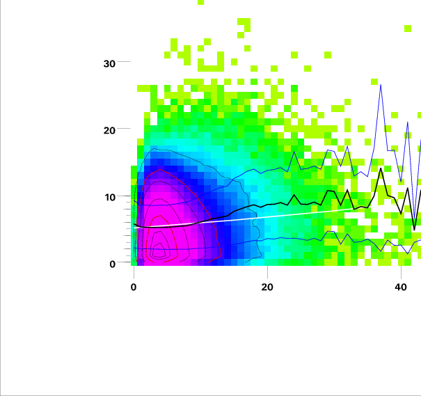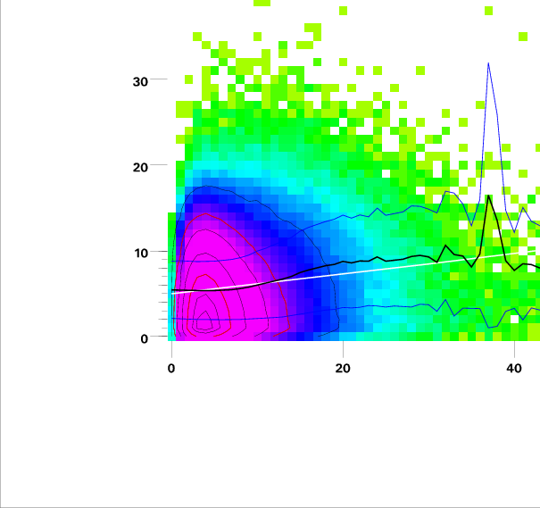 Contours on graphs enclose 99%, 95%, 90%, 75%, 50%, 25%, and 10% of data. 95 and 50 percentile contours are red.