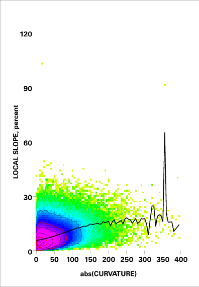 Correlation of local slope and local curvature