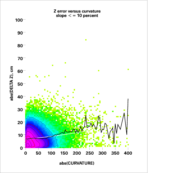 Correlation of relative Z error with local curvature