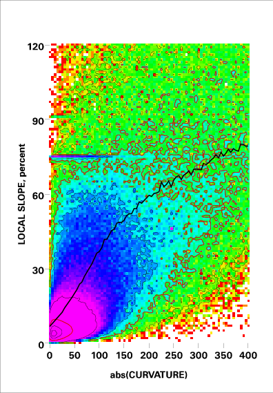 Correlation of local slope and local curvature