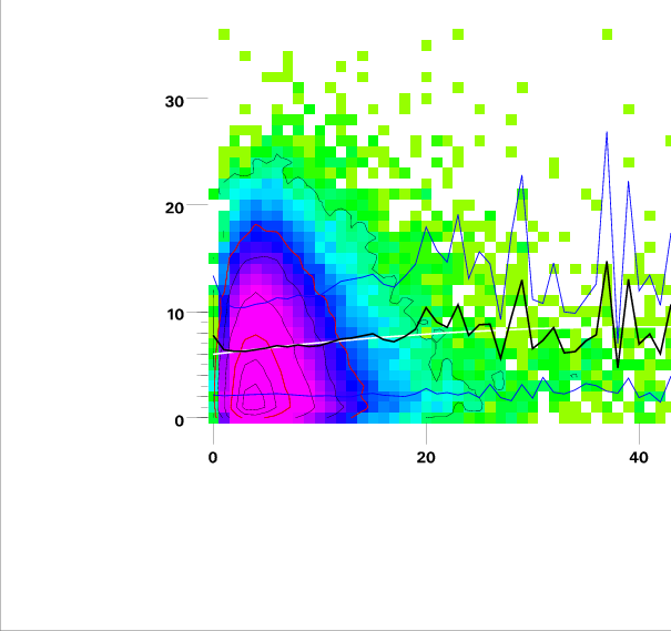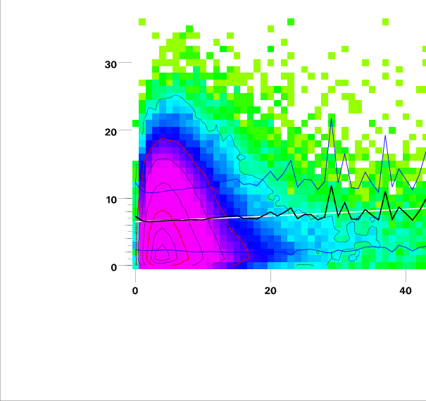 Contours on graphs enclose 99%, 95%, 90%, 75%, 50%, 25%, and 10% of data. 95 and 50 percentile contours are red.