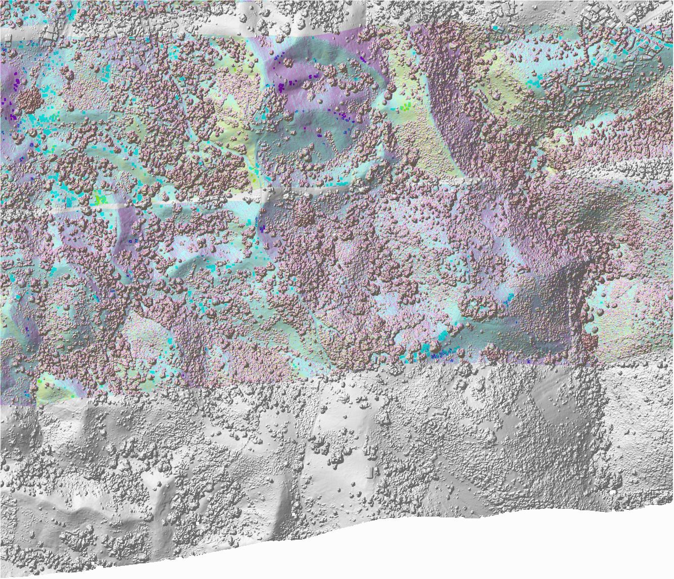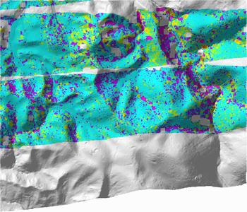 1st-return density![]() ground-return density ![]() density legend ratio ground returns to 1st returns ![]() ratio legend |