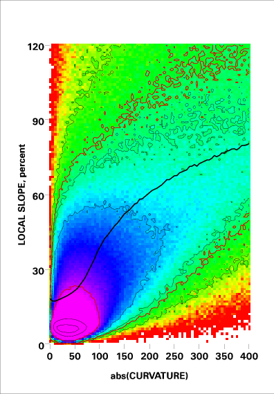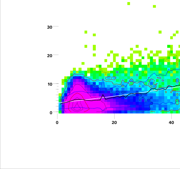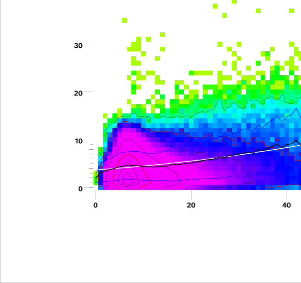 Contours on graphs enclose 99%, 95%, 90%, 75%, 50%, 25%, and 10% of data. 95 and 50 percentile contours are red.