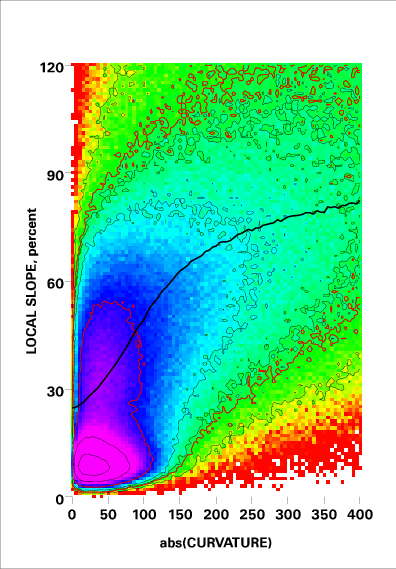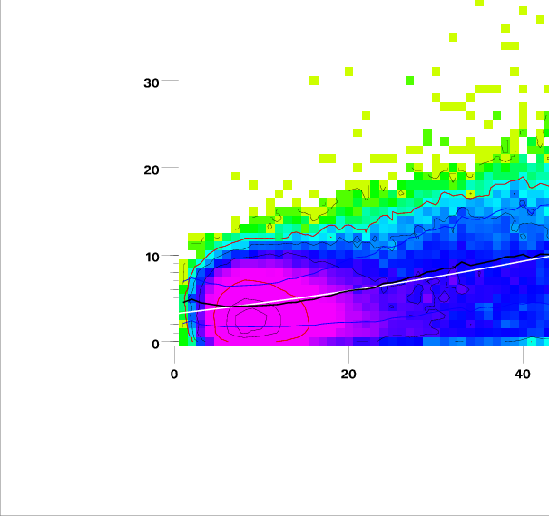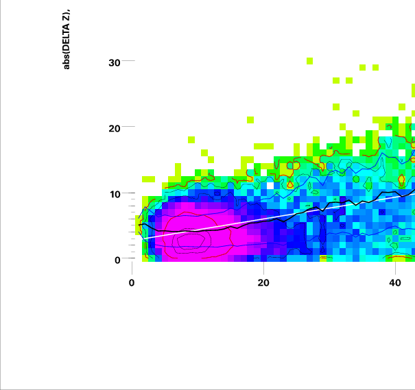 Contours on graphs enclose 99%, 95%, 90%, 75%, 50%, 25%, and 10% of data. 95 and 50 percentile contours are red.