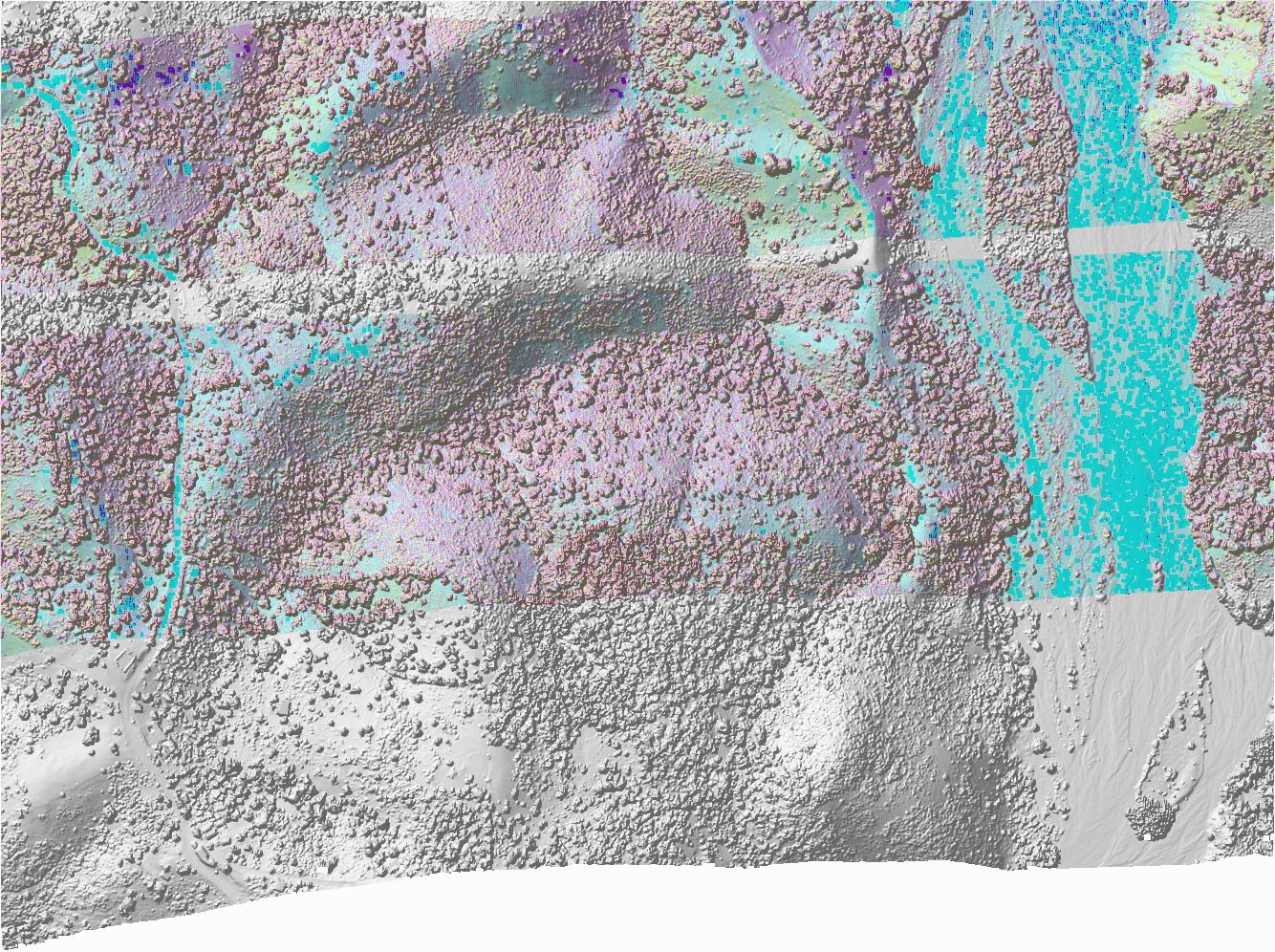 1st-return density![]() ground-return density ![]() density legend ratio ground returns to 1st returns ![]() ratio legend |