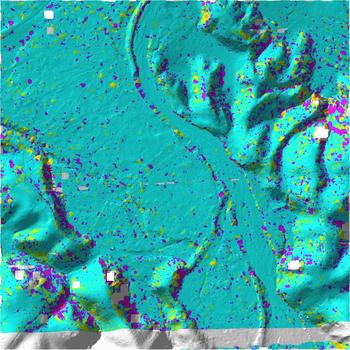 1st-return density![]() ground-return density ![]() density legend ratio ground returns to 1st returns ![]() ratio legend |