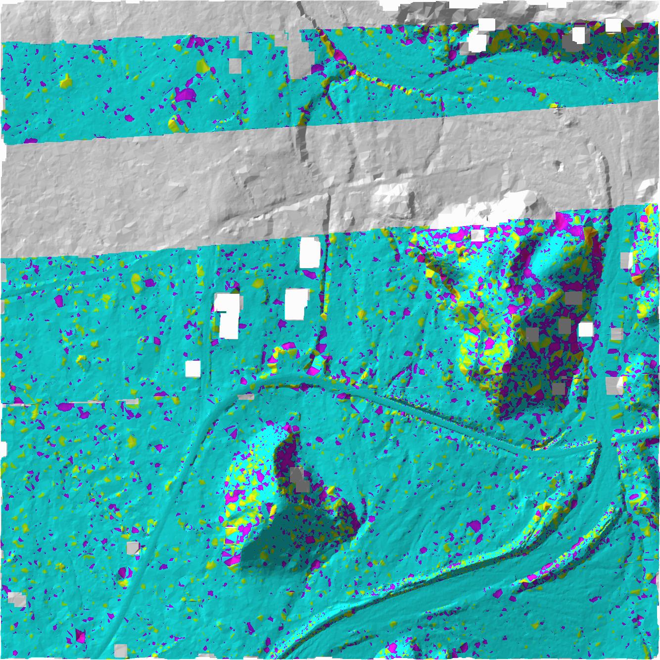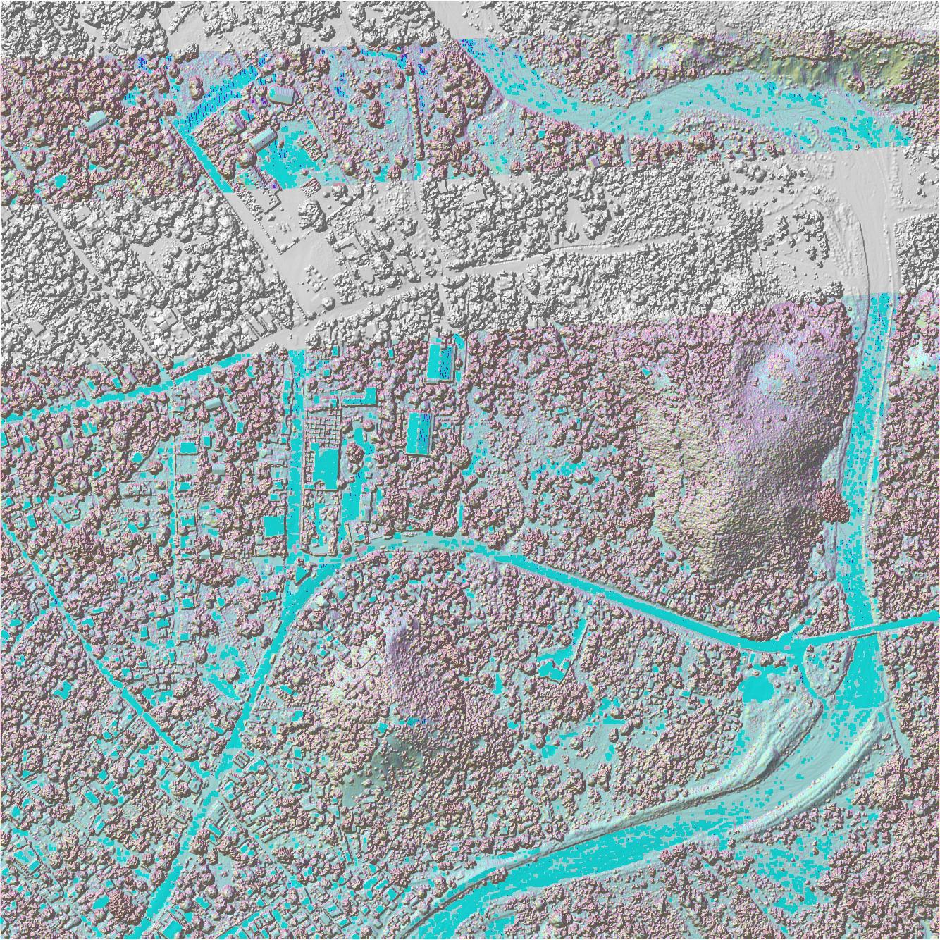 1st-return density![]() ground-return density ![]() density legend ratio ground returns to 1st returns ![]() ratio legend |