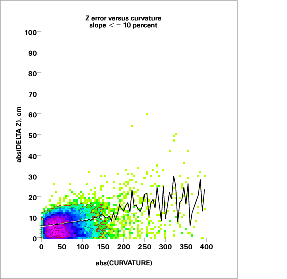 Correlation of relative Z error with local curvature