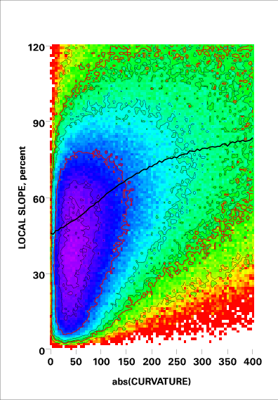 Correlation of local slope and local curvature