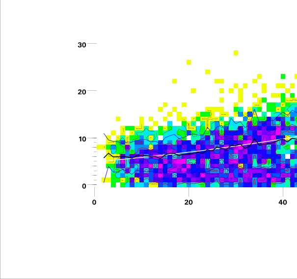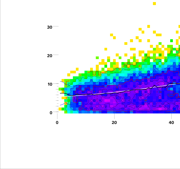 Contours on graphs enclose 99%, 95%, 90%, 75%, 50%, 25%, and 10% of data. 95 and 50 percentile contours are red.