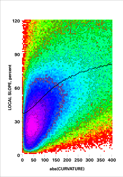 Correlation of local slope and local curvature