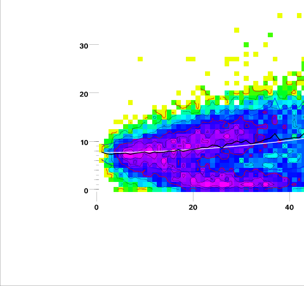 Contours on graphs enclose 99%, 95%, 90%, 75%, 50%, 25%, and 10% of data. 95 and 50 percentile contours are red.