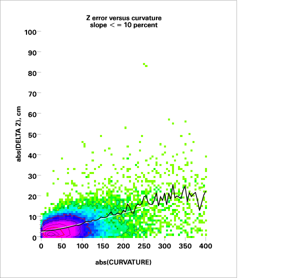 Correlation of relative Z error with local curvature
