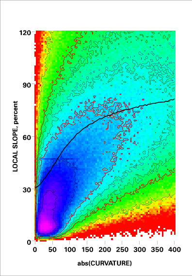 Correlation of local slope and local curvature