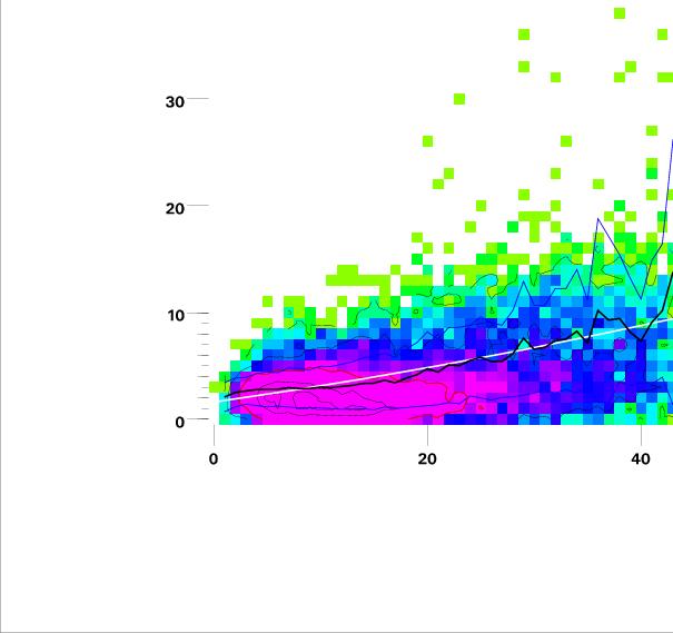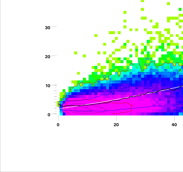 Contours on graphs enclose 99%, 95%, 90%, 75%, 50%, 25%, and 10% of data. 95 and 50 percentile contours are red.
