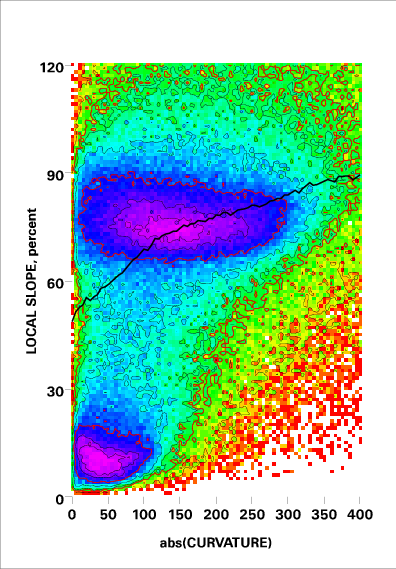 Correlation of local slope and local curvature