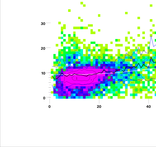 Contours on graphs enclose 99%, 95%, 90%, 75%, 50%, 25%, and 10% of data. 95 and 50 percentile contours are red.