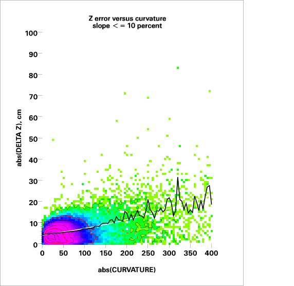 Correlation of relative Z error with local curvature