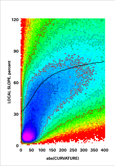 Correlation of local slope and local curvature
