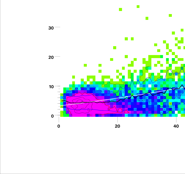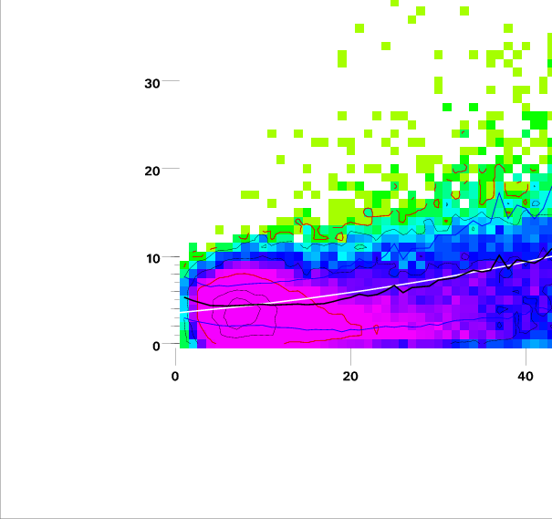 Contours on graphs enclose 99%, 95%, 90%, 75%, 50%, 25%, and 10% of data. 95 and 50 percentile contours are red.