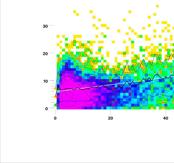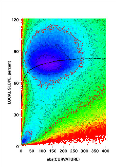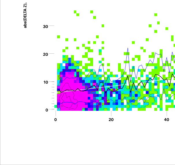 Contours on graphs enclose 99%, 95%, 90%, 75%, 50%, 25%, and 10% of data. 95 and 50 percentile contours are red.