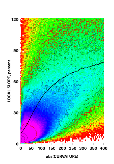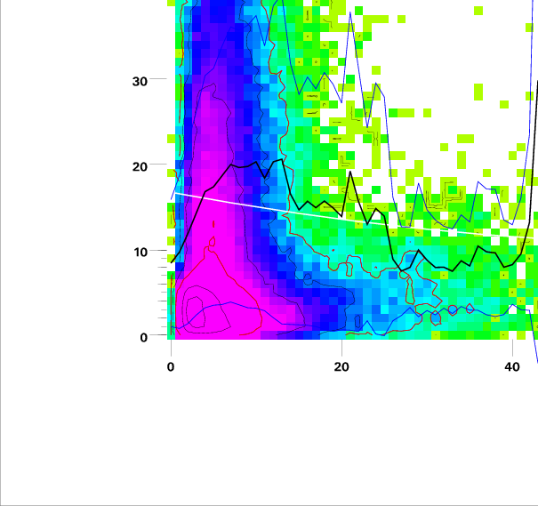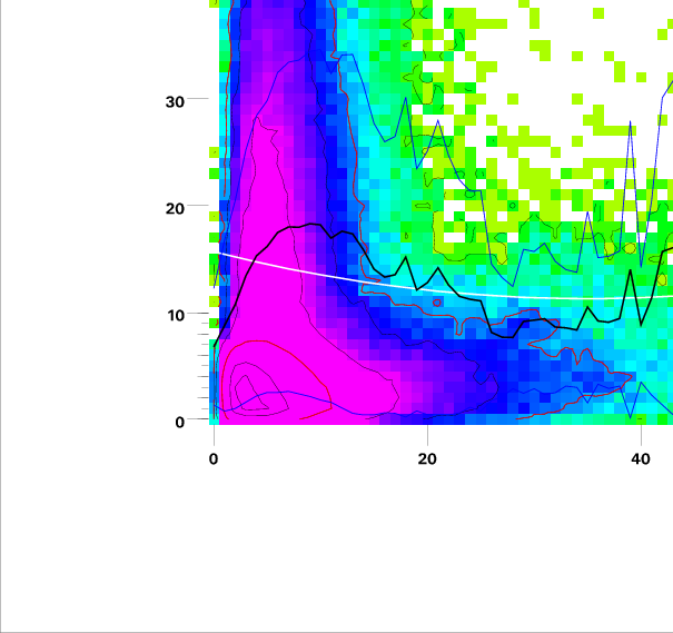 Contours on graphs enclose 99%, 95%, 90%, 75%, 50%, 25%, and 10% of data. 95 and 50 percentile contours are red.