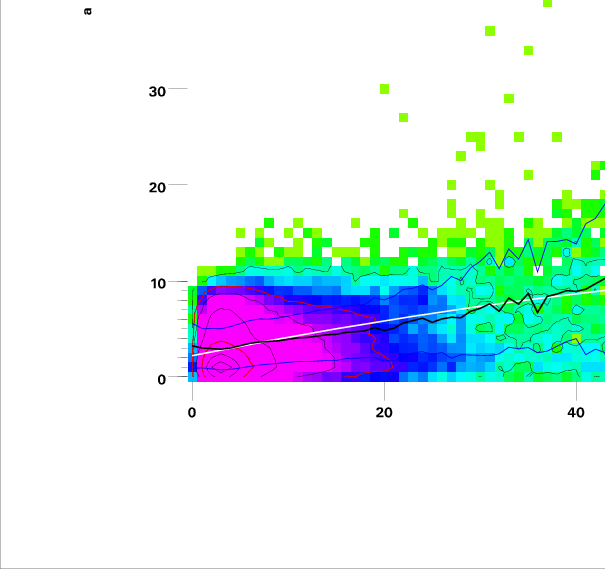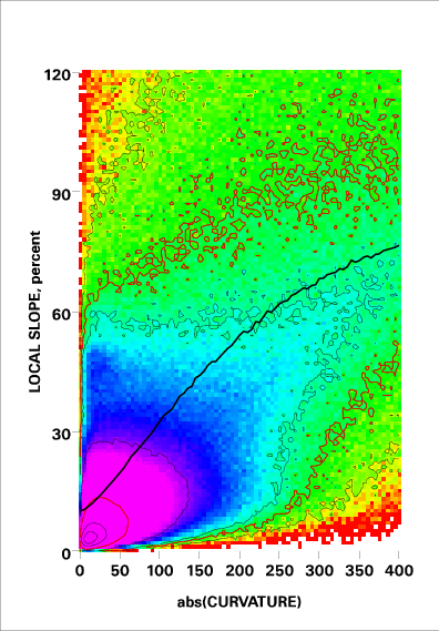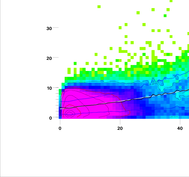 Contours on graphs enclose 99%, 95%, 90%, 75%, 50%, 25%, and 10% of data. 95 and 50 percentile contours are red.