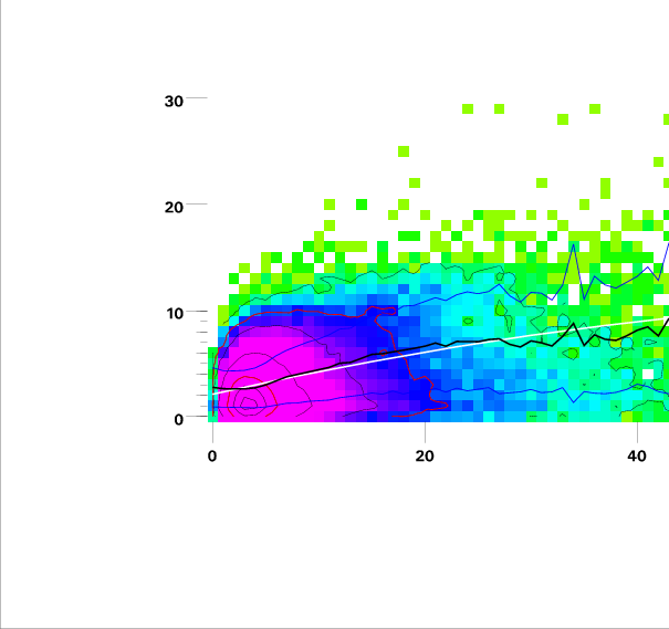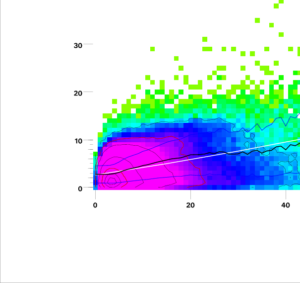 Contours on graphs enclose 99%, 95%, 90%, 75%, 50%, 25%, and 10% of data. 95 and 50 percentile contours are red.