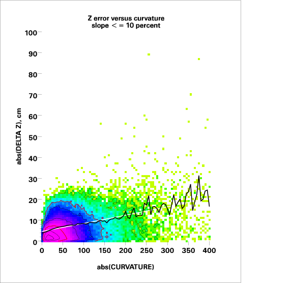 Correlation of relative Z error with local curvature