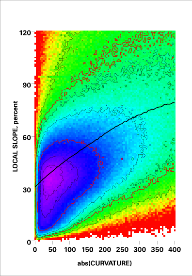Correlation of local slope and local curvature