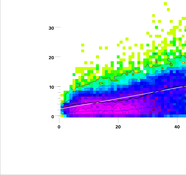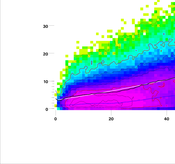 Contours on graphs enclose 99%, 95%, 90%, 75%, 50%, 25%, and 10% of data. 95 and 50 percentile contours are red.