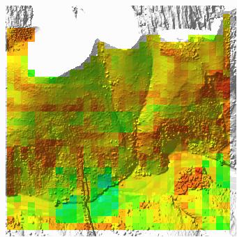 1st-return density![]() ground-return density ![]() density legend ratio ground returns to 1st returns ![]() ratio legend |