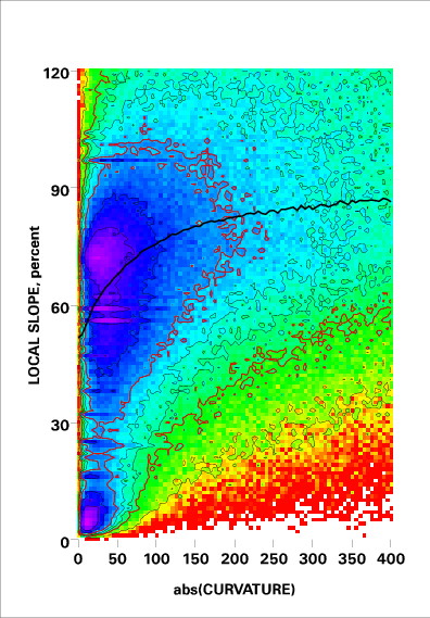 Correlation of local slope and local curvature