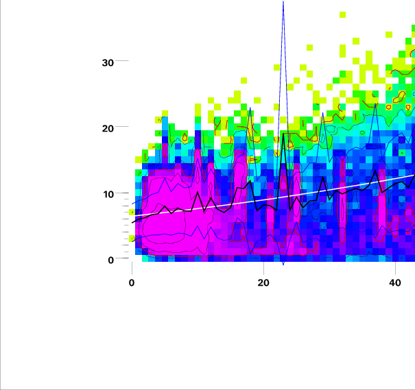 Contours on graphs enclose 99%, 95%, 90%, 75%, 50%, 25%, and 10% of data. 95 and 50 percentile contours are red.