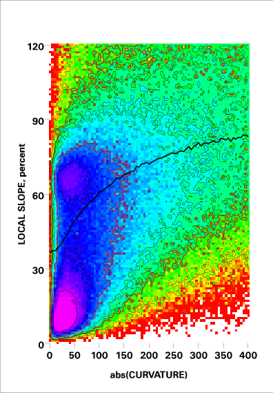 Correlation of local slope and local curvature