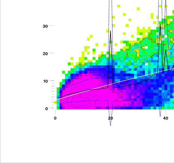Contours on graphs enclose 99%, 95%, 90%, 75%, 50%, 25%, and 10% of data. 95 and 50 percentile contours are red.