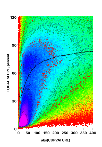 Correlation of local slope and local curvature