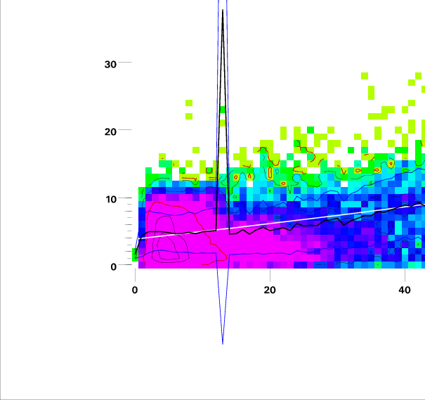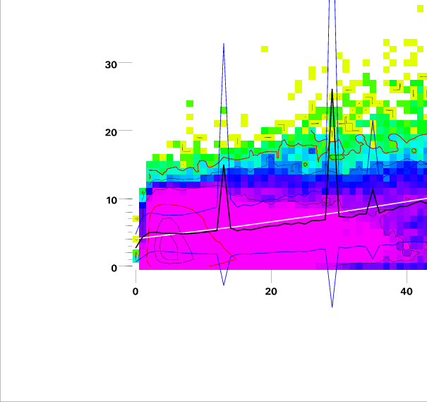Contours on graphs enclose 99%, 95%, 90%, 75%, 50%, 25%, and 10% of data. 95 and 50 percentile contours are red.