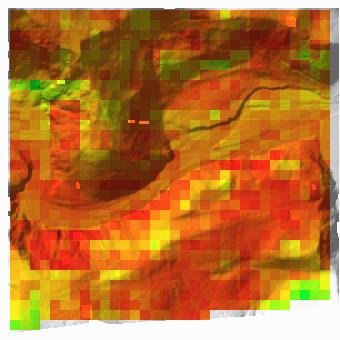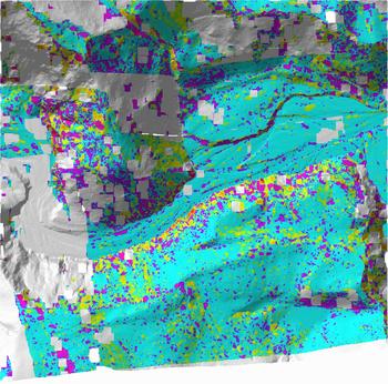 1st-return density![]() ground-return density ![]() density legend ratio ground returns to 1st returns ![]() ratio legend |