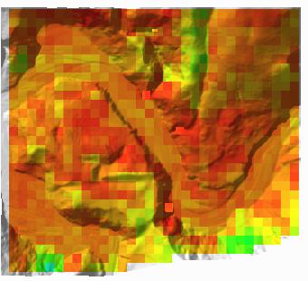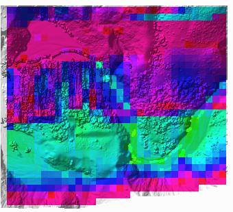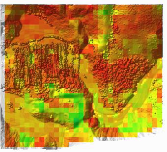 1st-return density![]() ground-return density ![]() density legend ratio ground returns to 1st returns ![]() ratio legend |