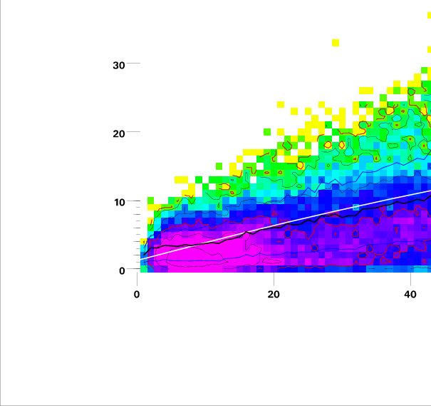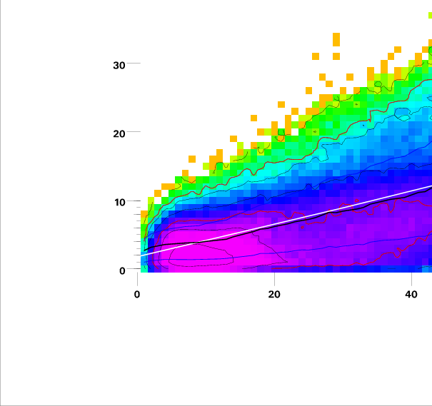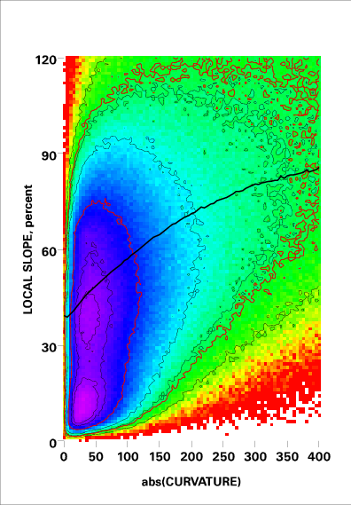Contours on graphs enclose 99%, 95%, 90%, 75%, 50%, 25%, and 10% of data. 95 and 50 percentile contours are red.