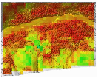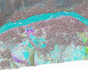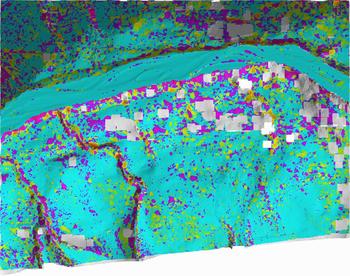 1st-return density![]() ground-return density ![]() density legend ratio ground returns to 1st returns ![]() ratio legend |