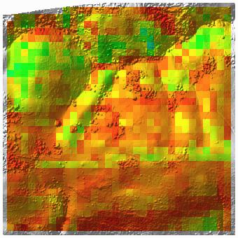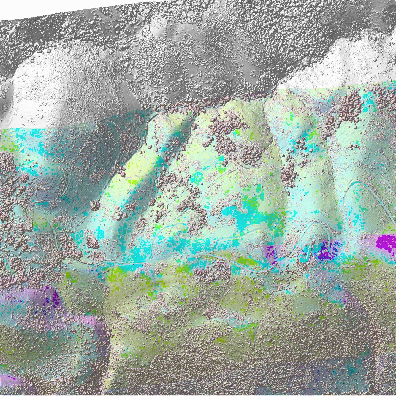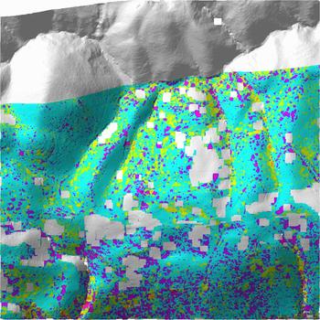 1st-return density![]() ground-return density ![]() density legend ratio ground returns to 1st returns ![]() ratio legend |